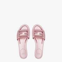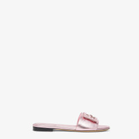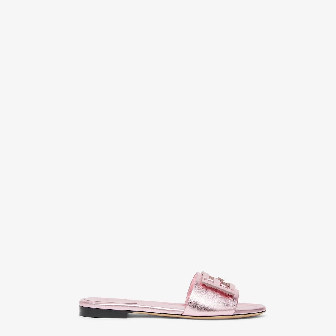Wide-band slides. Made of mauve pink metallic nappa leather. Embellished with FF Baguette motif in tone-on-tone leather. Made in Italy Composition: 100% lamb leather, inside: 100% lamb leather Product Code: 8R8136AI16F0ANA