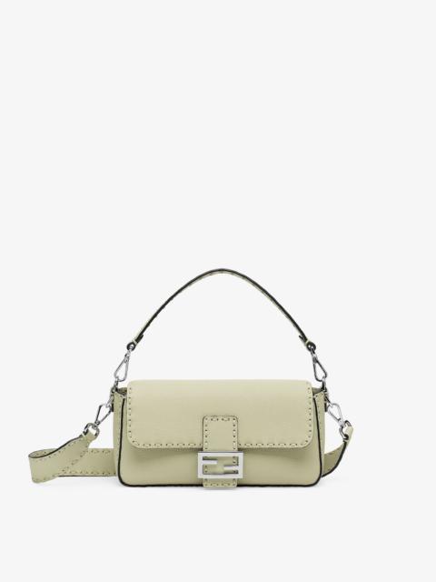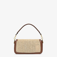 Iconic medium Baguette bag, created in 1997 which went on to become the leading It bag. Versatile and with timeless appeal, it features the iconic underarm design inspired by the French Baguette bread from which it takes its name. Made of natural-colored macramé raffia. Trimmed in brown calfskin and embellished with an FF clasp. Featuring a front flap, magnetic clasp, one unlined internal compartment with a removable leather pocket and gold-finish metalware. The bag can be carried by hand, or worn either on the shoulder or cross-body thanks to the handle and shoulder strap, both detachable. Made in Italy Measurements: - Height : 15 cm - Depth : 6 cm - Width : 27 cm - Weight : 0.49 kg - Strap length (min) : 90 cm - Strap length (max) : 90 cm - Shoulder strap drop : 41 cm Composition: 100% viscose, 100% calf leather Product Code: 8BR600AOVOF1PII