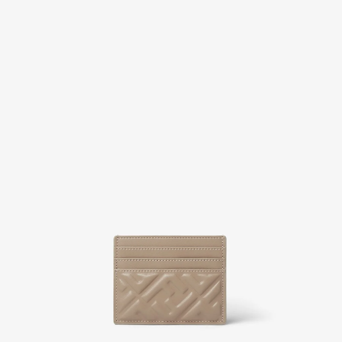Baguette card case with central compartment and six card slots. Made of soft, dove gray nappa leather with a 3D-effect embossed iconic FF motif. Gold-finish metalware. Made in Italy Composition: 100% lamb leather, 100% sheep leather, inside: 100% sheep leather Product Code: 8M0445AAJDF0E65