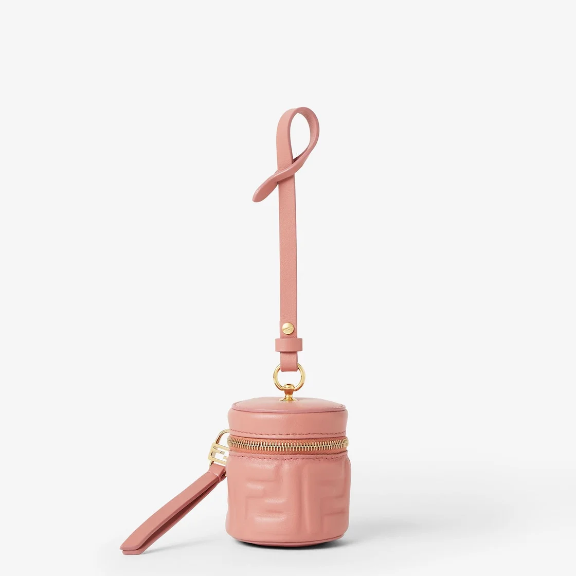 Zipper-around cylindrical coin purse charm. Long leather zipper pull decorated with FF Baguette logo. Leather strap to attach it to bags and belts. Made of soft, pink nappa leather with the iconic FF motif embossed with a three-dimensional effect. Gold-finish metalware. Made in Italy Composition: 100% calf leather, inside: 63% cotton, 34% polyester, 3% acrylic Product Code: 8M0518AAJDF13VM