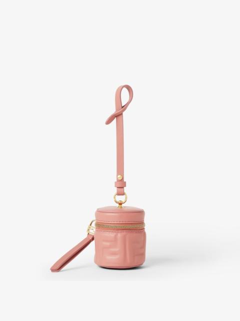 Zipper-around cylindrical coin purse charm. Long leather zipper pull decorated with FF Baguette logo. Leather strap to attach it to bags and belts. Made of soft black nappa leather with the iconic FF motif embossed with a three-dimensional effect. Gold-finish metalware. Made in Italy Composition: 100% calf leather, inside: 63% cotton, 34% polyester, 3% acrylic Product Code: 8M0518AAJDF0KUR