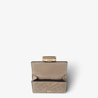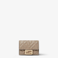 Compact, tri-fold Baguette wallet with large internal bill compartment, three concealed card holders and an external coin purse with a snap closure. Made of dove gray nappa leather with an embossed FF motif. Gold-finish metalware. Made in Italy Composition: 100% lamb leather, interior: 100% lamb leather, 50% cotton, 42% polyamide, 8% resin Product Code: 8M0395AAJDF0E65