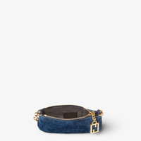 Mini Baguette pouch with zipper and zipper-pull in iconic FF motif for closure. Short chain shoulder strap, with openable snap hook on side to attach the accessory. Lined. Made of blue FF denim with a flocked texture. Gold-finish metalware. Made in Italy Composition: 85% cotton, 15% viscose, inside: 63% cotton, 34% polyester, 3% acrylic Product Code: 8M0535AW5HF1UJW