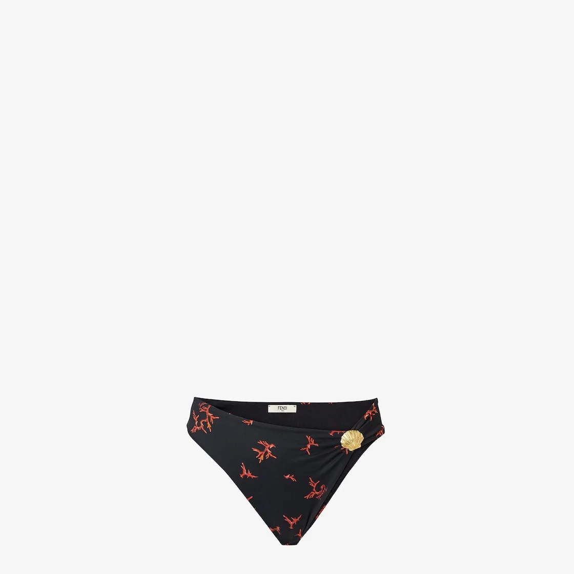 Bikini bottom made of black Lycra® with all-over coral print in red. Embellished with gold-colored shell detail on the left side. Made in Italy Composition: 78% polyamide, 22% elastane, lining: 82% polyamide, 18% elastane Product Code: FXBA50AT8OF1MVP