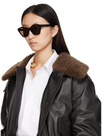 Cat-eye tortoiseshell acetate-frame sunglasses. · Brown lenses · 100% UVA/UVB protection, category 2 · Integrated nose pads · Inset logo hardware at temples · Includes pouch · Size: 54.19 145 Supplier color: Dark Havana/Brown Acetate. Made in Italy 252693F005003