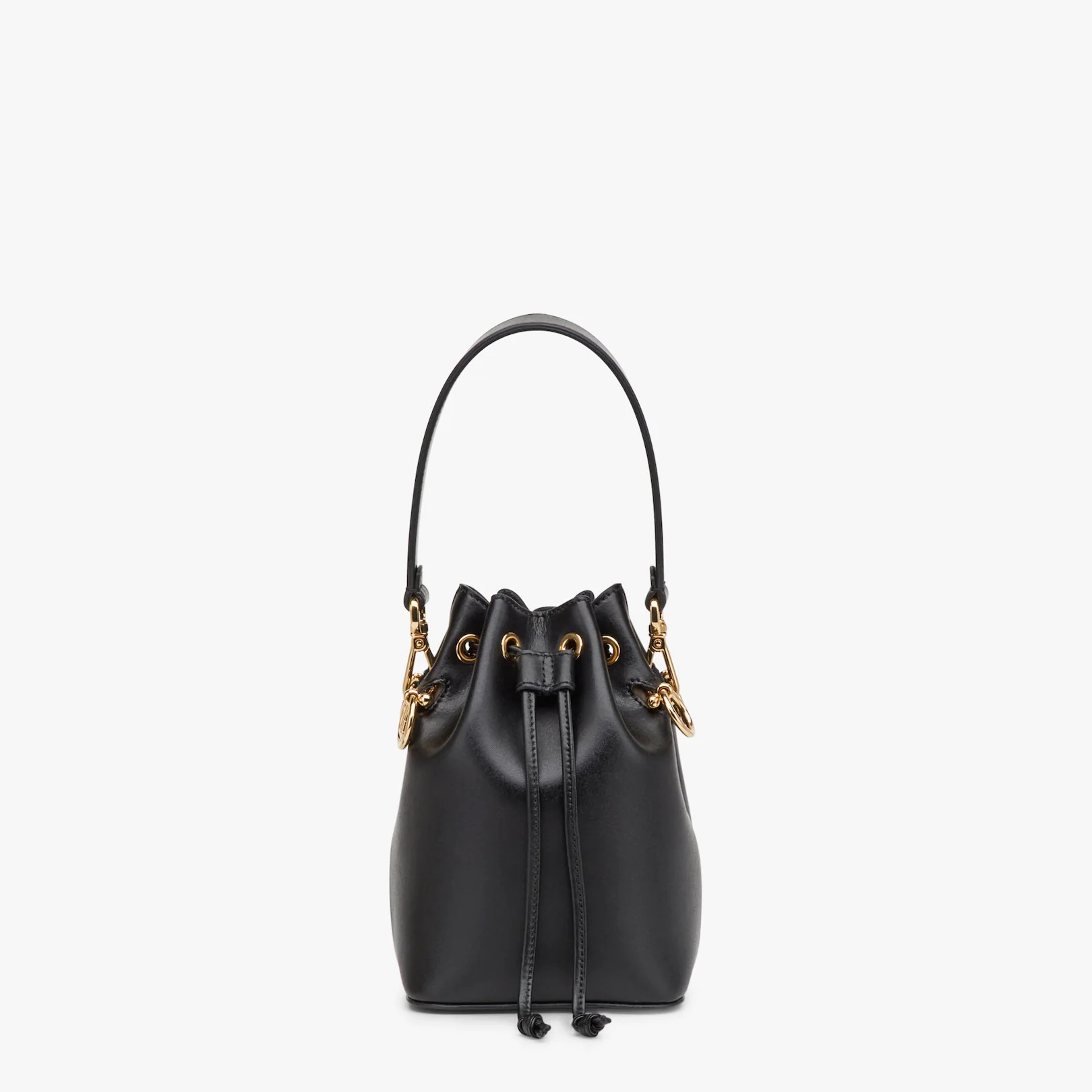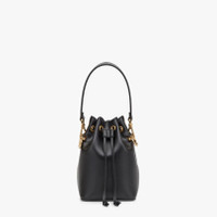 Small bucket bag with drawstring fastening and metal decorations in the form of the Fendi logo. The bag has two detachable shoulder straps, one long and one short, to wear the bag over the shoulder or cross-body. Made of black calfskin leather. Gold metalware. Made in Italy Composition: 100% Calf leather, inside: 60% Polyamide, 40% Polyurethane, 100% Brass metal, 100% Zamak Measurements: - Height: 18 cm - Depth: 10 cm - Length: 12 cm - Weight: 0.5 kg Product Code: 8BS010A0KKF0KUR