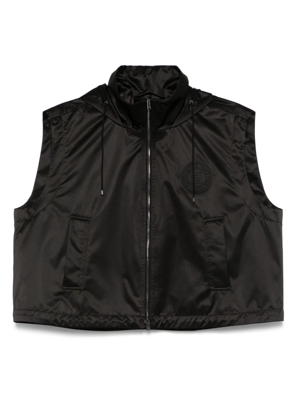 satin gilet Highlights - Black - Front two-way zip fastening - Drawstring hood - Two side welt pockets - Drawstring hem Made in Italy Composition Lining: Polyester 100% Outer: Polyurethane Resin 100% SIZE & FIT Model measurements Height 5 ft 9 in(1.75 m) Bust/Chest 34.64 in(88 cm) Hips 36.61 in(93 cm) Waist 26.37 in(67 cm) FittingInformation Designed for a relaxed fit, this piece allows for comfort and movement when worn The internal drawstring at the hem allows for fitted preferences Made from a midweight non-stretch fabric