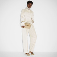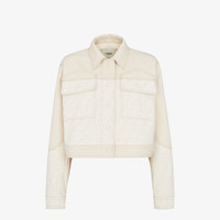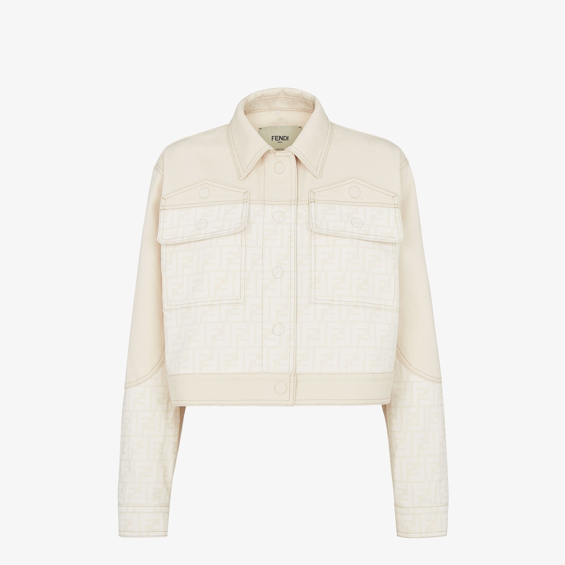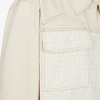 Cropped jacket with shirt collar and long sleeves. Patch pockets with flap on the front. Concealed closure. Made of two-tone denim in whites, with FF denim in the same shades. Finished with contrasting color topstitch. Made in Italy Composition: 100% cotton Fit: Regular Size worn: 38 IT. The model is 177 cm tall Product Code: FLF810AT1EF08QQ