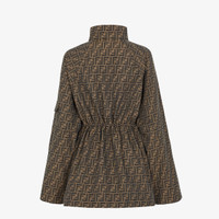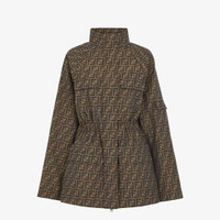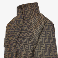 Safari jacket with adjustable internal drawstring waist. High neck and raglan sleeves. Four flap pockets on the front. Concealed zip fastening with double slider. Made of jacquard canvas with the iconic FF motif in brown. Embellished with a patch pocket on the left sleeve. Made in Italy Composition: 65% polyester, 35% cotton, 100% cupro Fit: Over Size worn: 38 IT. The model is 179 cm tall Product Code: FJ7817A5W3F118W