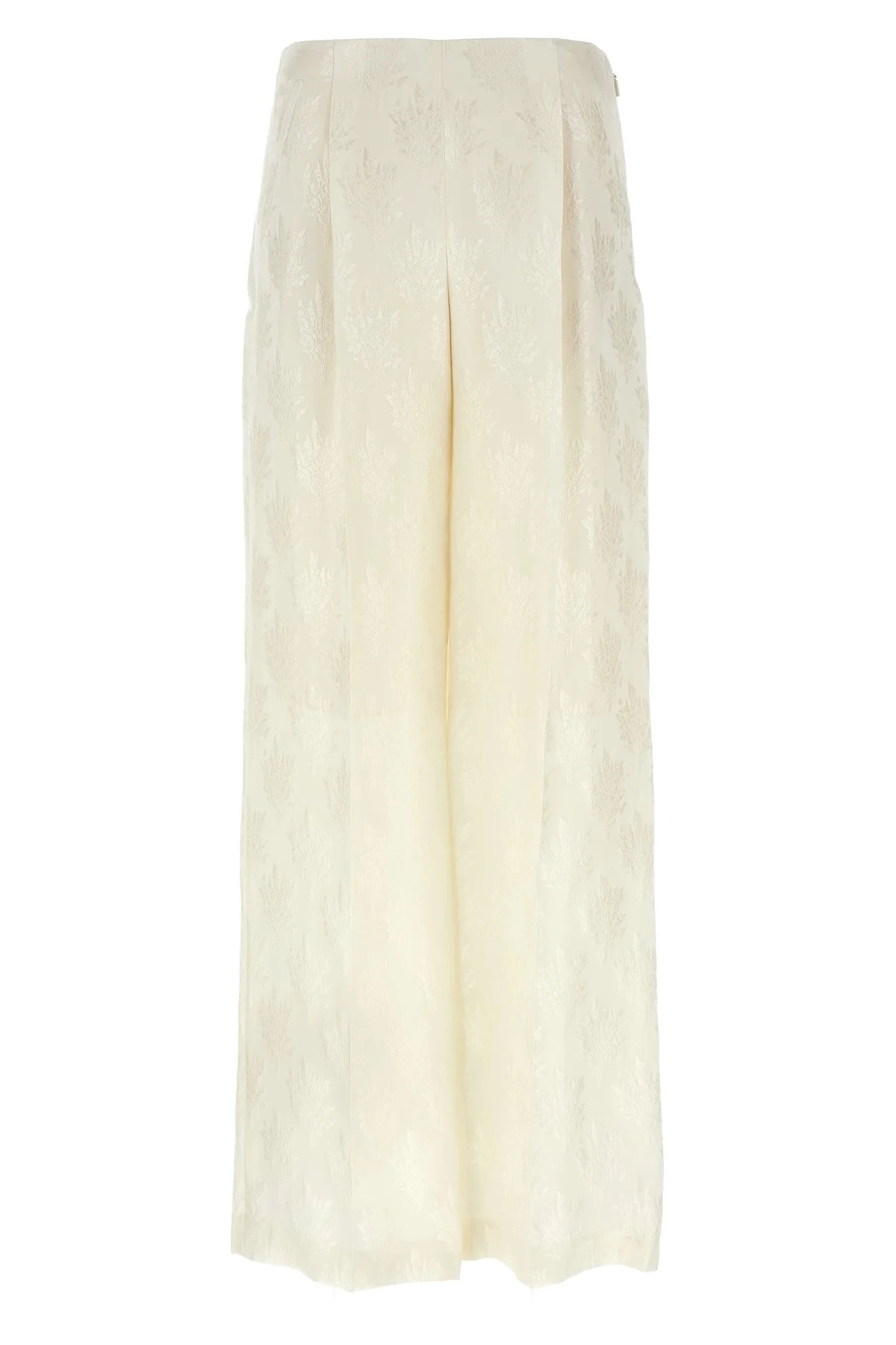 cod. FR6632AQ3GF08QQ Jacquard silk pants with floral bouquet pattern, pajama model, pleats and stretched pleat, straight leg, pockets, side zip closure. Color: White Size & Fit: true to size fit Composition: 51% silk, 49% viscose Made in: Italy