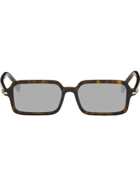 Rectangular tortoiseshell acetate-frame sunglasses. · Mirrored silver-tone lenses · 100% UVA/UVB protection, category 3 · Integrated nose pads · Studs at hinges · Etched logo at temples · Includes pouch · Size: 54.16 140 Supplier color: Dark Havana/Smoke Acetate. Made in Italy 252693F005005