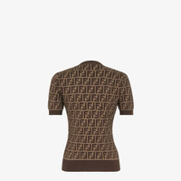 Slim-fit sweater. Crew neck and short sleeves. Made of a jacquard cotton knit with iconic brown FF motif. Trimmed with solid-colored ribbed edges. Made in Italy Composition: 100% cotton Size worn: 38 IT. The model is 178 cm tall Product Code: FZXC72ASJTF0GGE