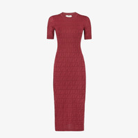 Sheath dress with crew neck and short, close-fitting sleeves. Made of burgundy viscose and cotton. Embellished with matching color FF pattern. Made in Italy PRODUCT INFORMATION - Product Code:: FZD832ABWQF1BGU - Composition:: 56% Cotton, 44% Viscose