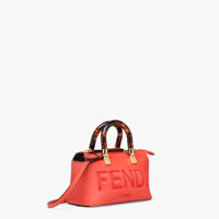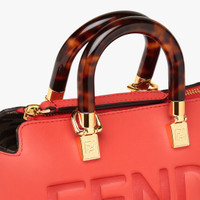 Iconic mini By The Way Boston bag made of red leather with hot-stamped FENDI ROMA lettering and rigid tortoiseshell-effect plexiglass handles. Zip fastening. Featuring a fabric-lined interior with a pocket and gold-finish metalware. The bag can be carried by hand with the handles, or worn either on the shoulder or cross-body with the detachable shoulder strap. Made in Italy Composition: 100% calf leather, inside: 64% polyester, 23% cotton, 13% polyurethane Model height: null Size worn: null Measurements: - Height : 12 cm - Depth : 9 cm - Width : 20.5 cm Product Code: 8BS067ABVLF0H6C