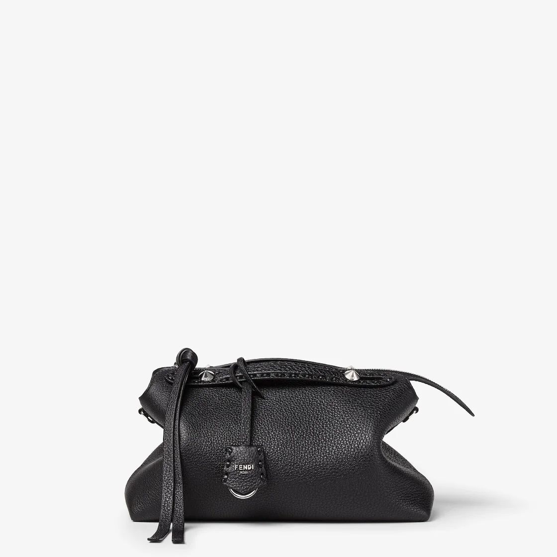Iconic medium By The Way Selleria bag, reworked for the Fall-Winter 2024/25 fashion show for a relaxed, lightweight look. Made with 192 hand-sewn tone-on-tone macro topstitches, an emblem of the iconic Selleria workmanship handed down through generations of Fendi artisans since 1925. Made of black Cuoio Romano leather, calfskin with a characteristic natural grain, produced with a metal-free tanning process. Featuring a leather-lined interior, hand-stitched Selleria stamp in Cuoio Romano leather and palladium-finish metalware. Customizable pendant and long zipper-pull with knot. The bag can be carried by hand with the handles or worn either on the shoulder or cross-body with the adjustable, detachable shoulder strap that can be knotted. Made in Italy Composition: 100% calfskin, inside: 100% calfskin Product Code: 8BL155ASU2F0GXN