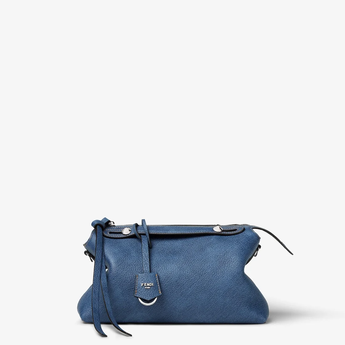 Iconic medium By The Way Selleria bag, reworked for the Fall-Winter 2024/25 fashion show for a relaxed, lightweight look. Crafted from blue Cuoio Romano leather, a calfskin with a distinctive natural grain, a material produced using a metal-free tanning process and featuring a unique denim-effect finish. Finished with contrasting stitching in yellow yarn. Internal lining and palladium-finish metalware. Customizable pendant and long zipper-pull with knot. The bag can be carried by hand with the handles, or worn either on the shoulder or cross-body with the adjustable, detachable shoulder strap that can be knotted. Made in Italy Composition: 100% calf leather, inside: 100% calf leather Product Code: 8BL155AUSZF04QL