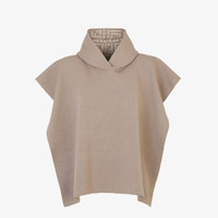Wide-cut short poncho with hood. Made of double-sided wool in dove gray. Lining with FF motif in the same colors. Made in Italy Composition: 86% fleece wool, 13% polyamide, 1% elastane Product Code: FXX781AOJ8F0QD3