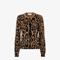 Regular-fit cardigan with round neckline and long sleeves. Horn button fastening. Made of wool and cashmere jacquard knit with the exclusive Fendi Leo motif: a reinterpretation of the timeless leopard motif, inspired by an archive coat and characterized by the butterfly effect created by the spots on the back. Solid-color ribbed edges. Made in Italy Composition: 80% wool, 20% cashmere, 8 buttons: 100% horn Size worn: 38 IT. The model is 178 cm tall Product Code: FZE548AYLZF1T6O