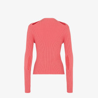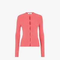 Slim-fit cardigan with crew neck and extra-long sleeves. Made of deep pink cotton in a rib knit. The front closure with press studs creates a cut-out motif also repeated on the shoulders and elbows. Embellished with FF detail on the left sleeve cuff. Made in Italy Composition: 80% Cotton, 15% Polyamide, 5% Elastane Model height: 178 cm Size worn: 38 IT Product Code: FZC963ANJBF1K9Y