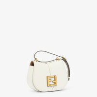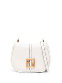 Small satchel bag with curved, feminine lines made of white leather. Embellished with embossed details and edges and an FF logo on the flap. Magnetic clasp. Flat pocket on back. Lined interior with flat pocket and vintage gold finish metalware. Features an adjustable and detachable shoulder strap. The shoulder strap hooks become an elegant accent with studs and an FF logo when the bag is open. Made in Italy Composition: 100% calfskin, inside: 60% polyamide, 40% polyurethane Model height: null Size worn: null Measurements: - Height : 15 cm - Depth : 6.5 cm - Width : 21 cm - Strap length (max) : 56 cm Product Code: 8BS082AQ0LF1550