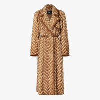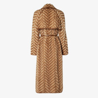 Long trench coat. Matching leather belt with metal Fendi O’Lock buckle. Made of mink with a light brown chevron motif. The special Featherlike construction makes the item exceptionally lightweight. Made in Italy Composition: 100% mink fur, lining: 100% silk, belt: 100% calfskin, 100% brass Fit: Regular Product Code: FNF07MAJ9TF1L5U