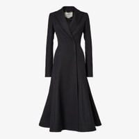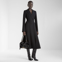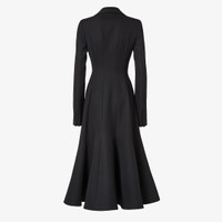 Midi coat with peplum detail at the hem, fitted at the waist and slightly flared at the hem. Internal closure with hooks. Made of black wool grain de poudre. Lining customized with FF jacquard. Made in Italy Composition: 100% fleece wool, lining: 100% viscose Size worn: 38 IT. The model is 178 cm tall Product Code: FF6158AJYFF0GME