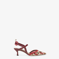 Streamlined and feminine Colibri Lite slingbacks with narrow elastic ribbons that wrap around the foot. The sole is embellished with rubber inserts. Made of nude-color mesh with the iconic embossed FF motif embroidered in multicolor yarn. The padded cushion and hiking shoe tab add a sporty touch. Red leather-covered heel. Made in Italy Composition: 100% polyamide, inside: 100% lamb leather Product Code: 8J8558AORMF1Q05