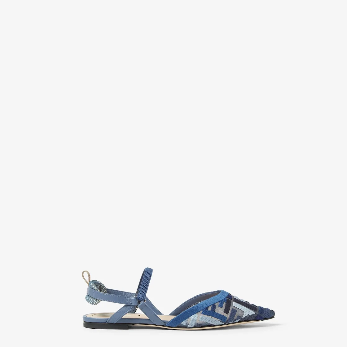 Streamlined and feminine Colibri Lite slingbacks with narrow elastic ribbons that wrap around the foot. The sole is embellished with rubber inserts. Made of mesh with multicolor-yarn FF embroidery in blue tones. The padded cushion and hiking shoe tab add a sporty touch. Made in Italy Composition: 100% polyamide, inside: 100% lamb leather Product Code: 8J8559AORMF1T01