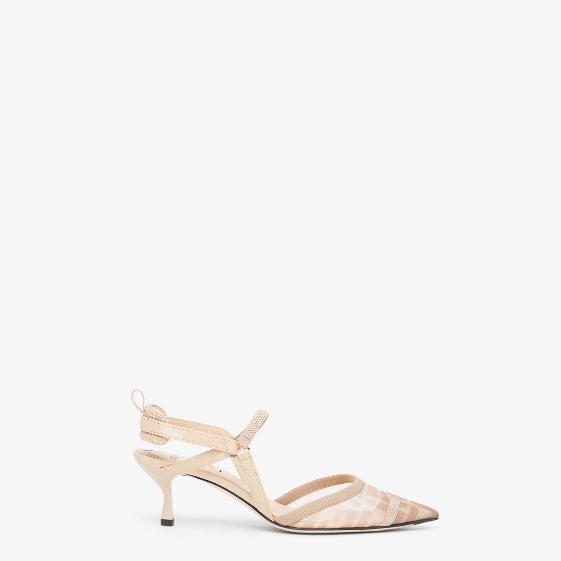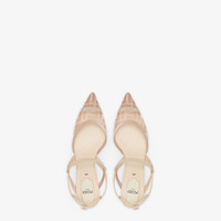 Streamlined and feminine Colibri Lite slingbacks with narrow elastic ribbons that wrap around the foot. The sole is embellished with rubber inserts. Made of pink mesh with FF motif. Nappa leather details and nude-color ribbon trim. The padded cushion and hiking shoe tab add a sporty touch. Pink lacquered heel. Made in Italy Composition: 100% polyamide, inside: 100% lamb leather Product Code: 8J8589AQ6UF1R8N