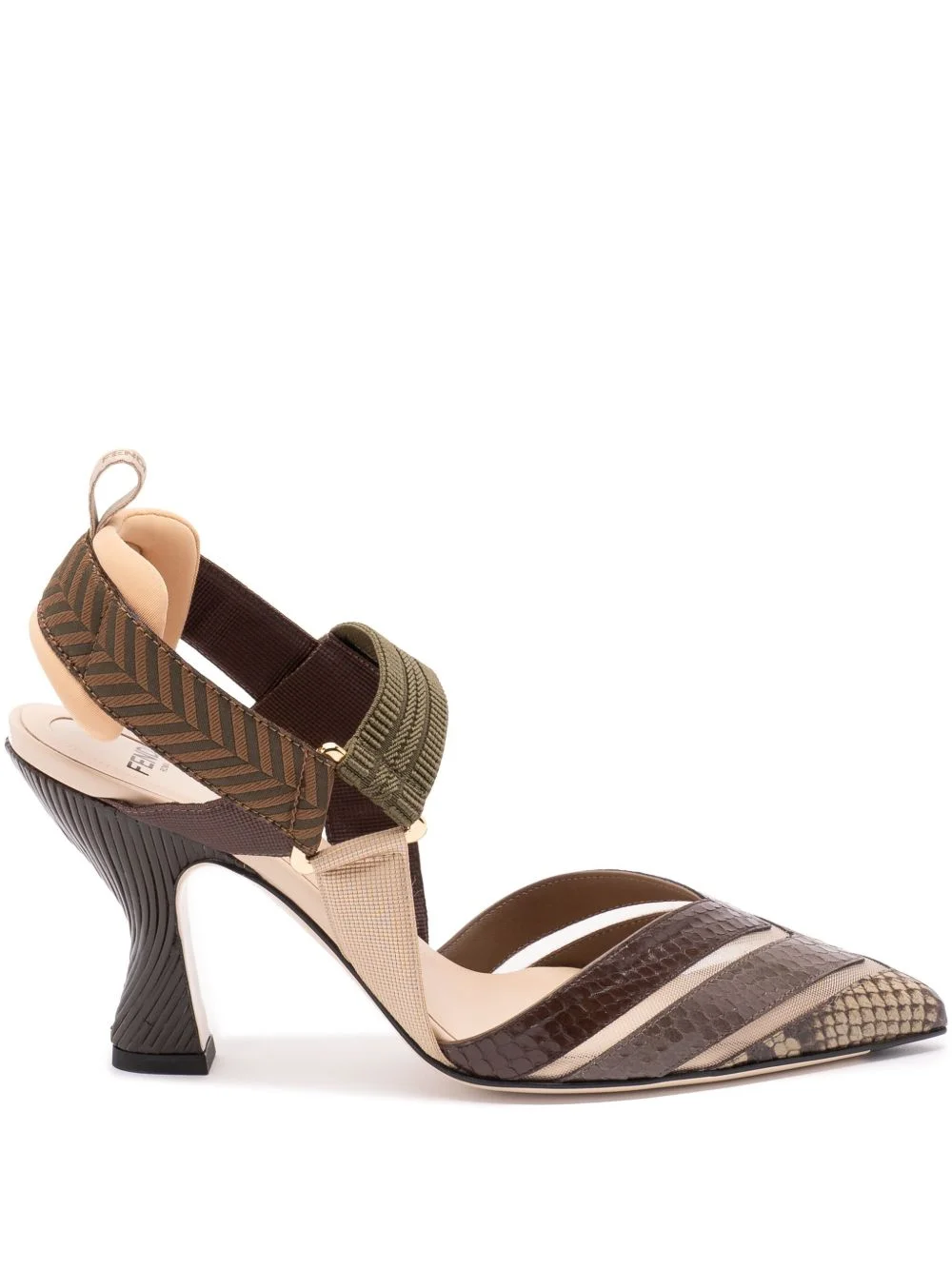 85mm Colibri heeled pumps Highlights - Brown - Snakeskin-effect leather - Slingback strap - Elasticated strap - Sculpted heel Made in Italy Composition Outer: Other Fabrics 100%, Fabric 100% Sole: Leather 100% Lining: Polyurethane 100% SIZE & FIT Measurement HEEL 3.34 in(8.5 cm)