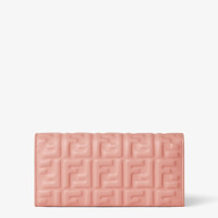 Baguette continental wallet with geometrically shaped flap, FF clasp and fine, removable chain shoulder strap. The interior features a wallet layout with two gusseted compartments, a zipper pocket, two flat pockets and ten card slots. Made of soft, pink nappa leather with the iconic FF motif embossed with a three-dimensional effect. Gold-finish metalware. Made in Italy Composition: 100% lamb leather, inside: 100% lamb leather, 50% cotton, 42% polyamide, 8% resins Product Code: 8M0365AAJDF13VM