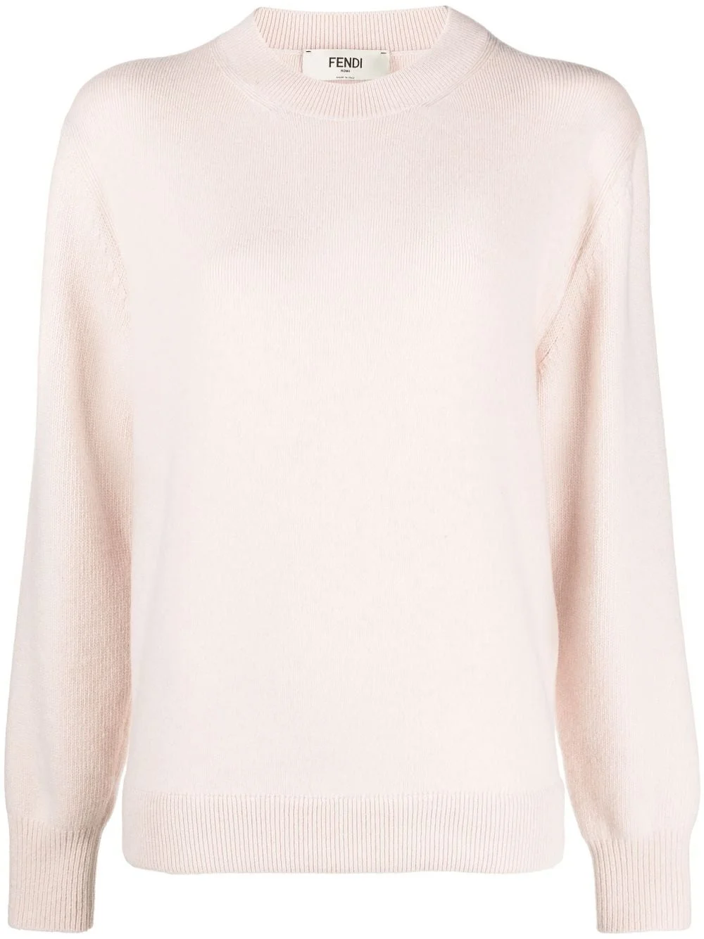 crew-neck jumper Designed for a super soft finish, this almond-hued jumper is part of Fendi's SS23 collection and follows the Italian's house craftsmanship and attention to detail. Boasting a wool and cashmere blend, this long-sleeved style is accented by ribbed trims for a modern finish. Made in Italy Composition Wool 67%, Cashmere 29%, Polyamide 3%, Elastane 1% SIZE & FIT Model measurements Height 5 ft 10 in(1.77 m) Bust/Chest 30.31 in(77 cm) Hips 34.25 in(87 cm) Waist 22.83 in(58 cm) FittingInformation Designed for a relaxed fit, this piece allows for comfort and movement when worn The ribbed hem offers a close, comfortable fit Made with a midweight knit, this piece offers some stretch
