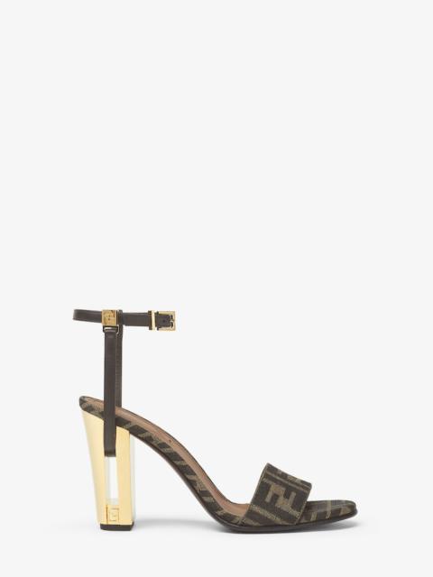 Delfina round-toe sandals with an ankle strap. Made of beige nappa leather with a matching embossed FF motif. Resin heel with leather-effect print with cut-out detail and tone-on-tone FF motif. Gold-finish metalware. Made in Italy Composition: 100% lamb leather, inside: 100% calf leather Product Code: 8X8442ABOHF1NR6