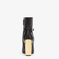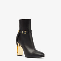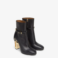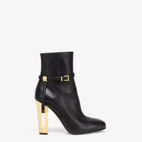 Delfina round-toe ankle boots. Side zipper closure on the inside. Made of black leather. Heel with cut-out detail and gold-colored metal FF motif. Made in Italy Measurements: - Heel height : 105 mm Composition: 100% Calfskin, interior: 100% Lambskin Product Code: 8T8454NA7F0QA1