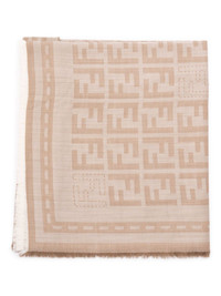 monogram-pattern scarf Highlights - Beige - Jacquard weave - Oversized design - Logo print - Fringed edges - Smooth texture - Decorative border - Soft drape Made in Italy Composition Wool 100% Washing instructions Read Manufacturer Guidelines