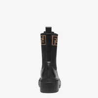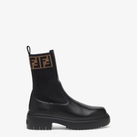 Domino biker boots with round toes and elastic inserts at the sides. Lug sole in rubber. Made of black leather. Finished with FF motif on the instep. Made in Italy Measurements: - Heel height : 50 mm Composition: 100% calf leather, interior: 100% calf leather Product Code: 8T8457AQ61F0PMM