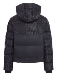 FF-motif hooded jacket Highlights - Black - Ff jacquard - High neck - Drawstring hood - Diagonal pockets - Knitted cuffs - Zip fastening Made in Italy Composition Outer: Polyurethane Resin 100%, Cotton 64%, Wool 50%, Polyamide 36% Lining: Polyester 100%, Down 90%, Feather 10% Washing instructions Read Manufacturer Guidelines