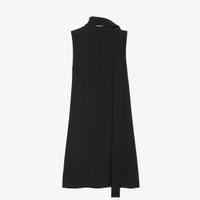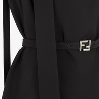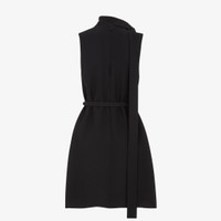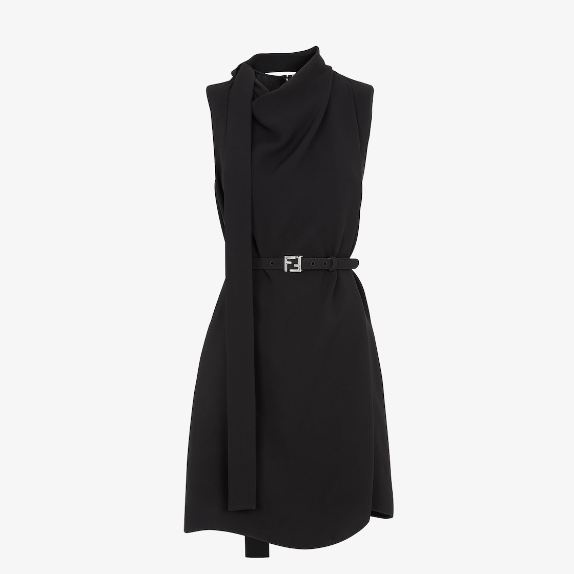 Short sleeveless A-line dress with high collar and scarf detail to tie at the side. Matching belt with FF stud buckle. Invisible rear zipper closure. Made of black silk cady. Palladium-finish metalware. Made in Italy Composition: 100% silk, 2 buttons: mother of pearl Product Code: FDD208AWZIF0GME