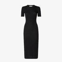 Short-sleeved, fitted midi dress. Made of black cotton and viscose yarn with the iconic all-over FF motif in the same color. Finished with ribbed crew neck. Made in Italy Composition: 60% cotton, 40% viscose Product Code: FZDD59AUZRF0GME