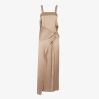 Flowing long sleeveless dress, with square neckline and extra-long, logo ribbon shoulder straps. Made of brown silk satin. The wrap-around closure with long logo ribbon and metal rings creates a soft draping on the front. Made in Italy Composition: 100% silk Model height: null Size worn: null Product Code: FDC627ANQZF1KE2