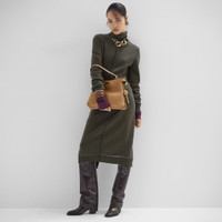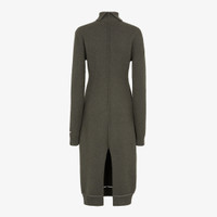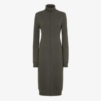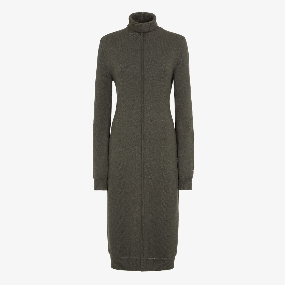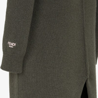 High neck midi dress with low-set long sleeves. Ribbed edges. Made of dark green cashmere jersey. Embellished with inside-out details, raised stitching and embroidered logo on the left arm. Made in Italy Composition: 100% cashmere, 100% viscose Size worn: 38 IT. The model is 178 cm tall Product Code: FZDC80ASJQF0TGC