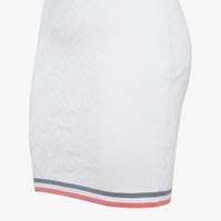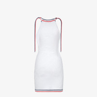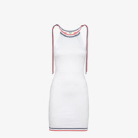 Short sleeveless halter neck dress. Fitted. Made of a white viscose knit with all-over Fendi Mirror lettering intarsia in the same color. Made in Italy Composition: 53%viscose, 40%polyamide, 4%polyurethane, 3%polypropylene Model height: null Size worn: null Product Code: FZDA98ANZEF0ZNM