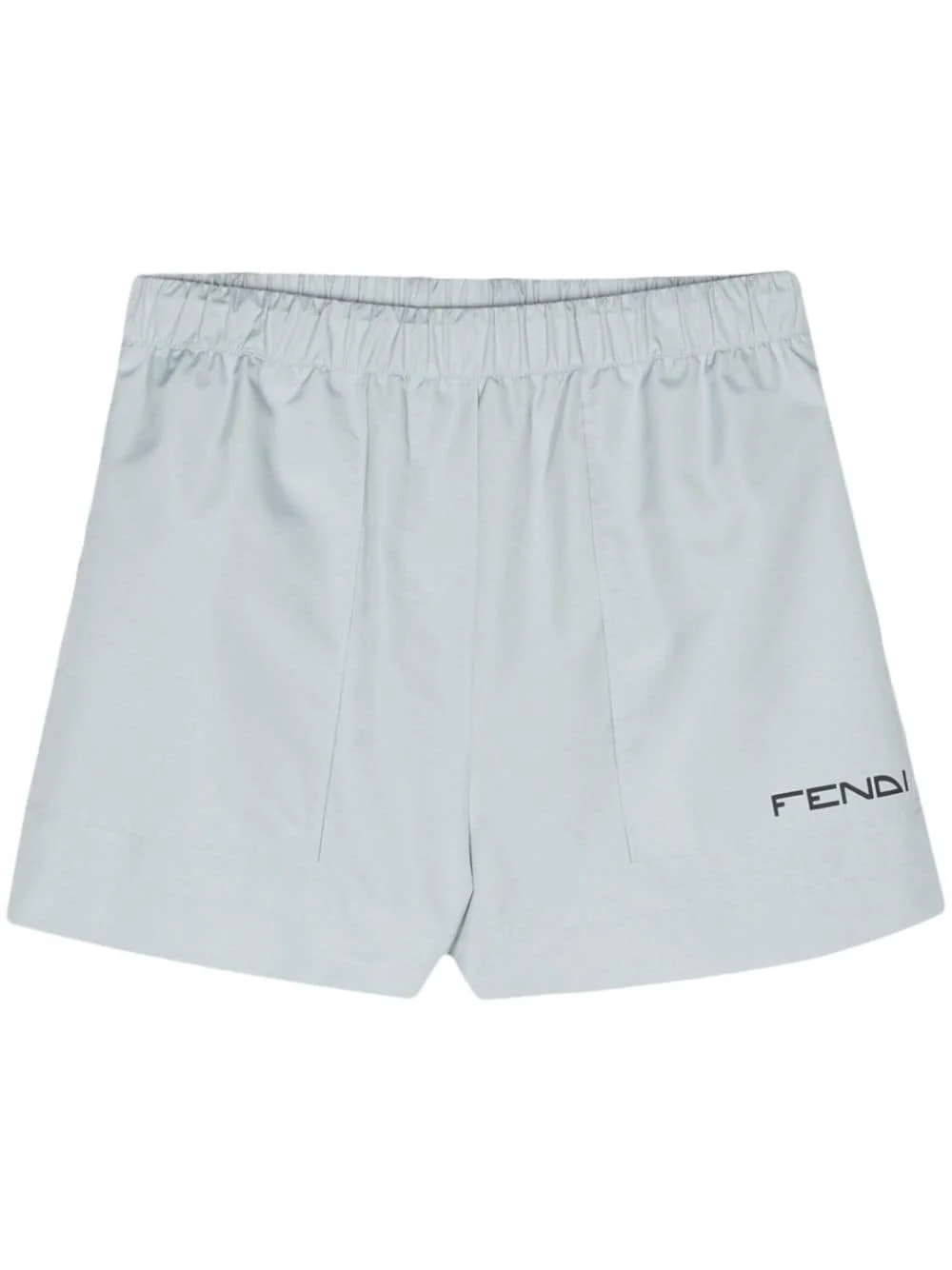 elasticated-waistband shorts Highlights - Powder blue - Lightweight - Elasticated waistband - Two side zip-fastening pockets - Logo print to the front - Drawstring fastening to the rear Made in Italy Composition Polyester 100% SIZE & FIT FittingInformation Designed for a relaxed, roomy fit The tie fastening gives an adaptable and personalised fit Made from a midweight non-stretch fabric