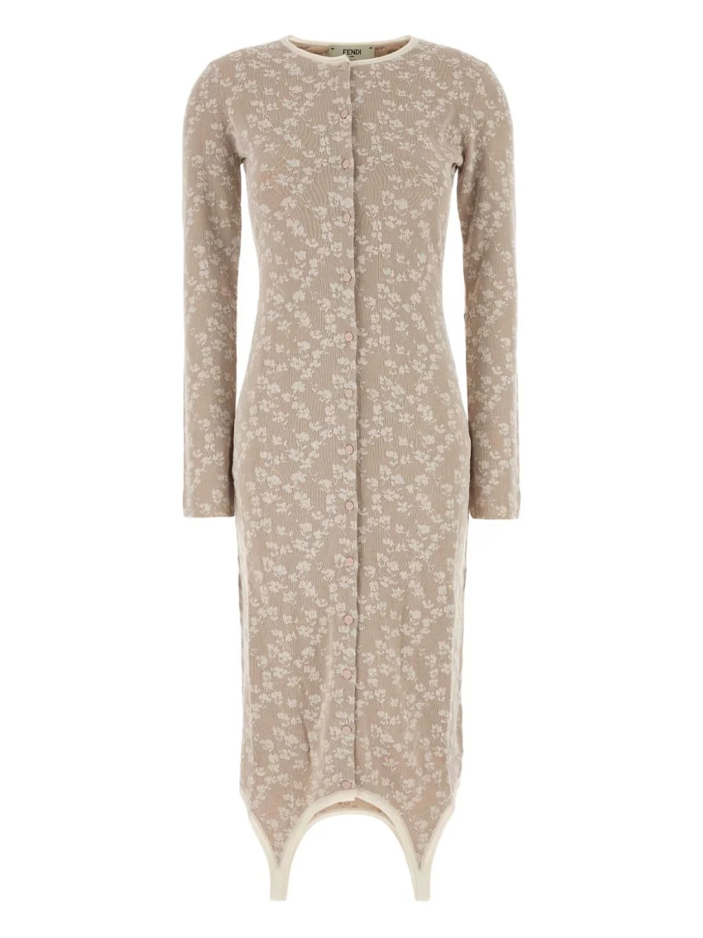 floral-print midi dress Highlights - Beige - Floral pattern - Long sleeves - Button fastening - Asymmetrical hem Made in Italy Composition Cotton 82%, Nylon 18% Washing instructions Read Manufacturer Guidelines