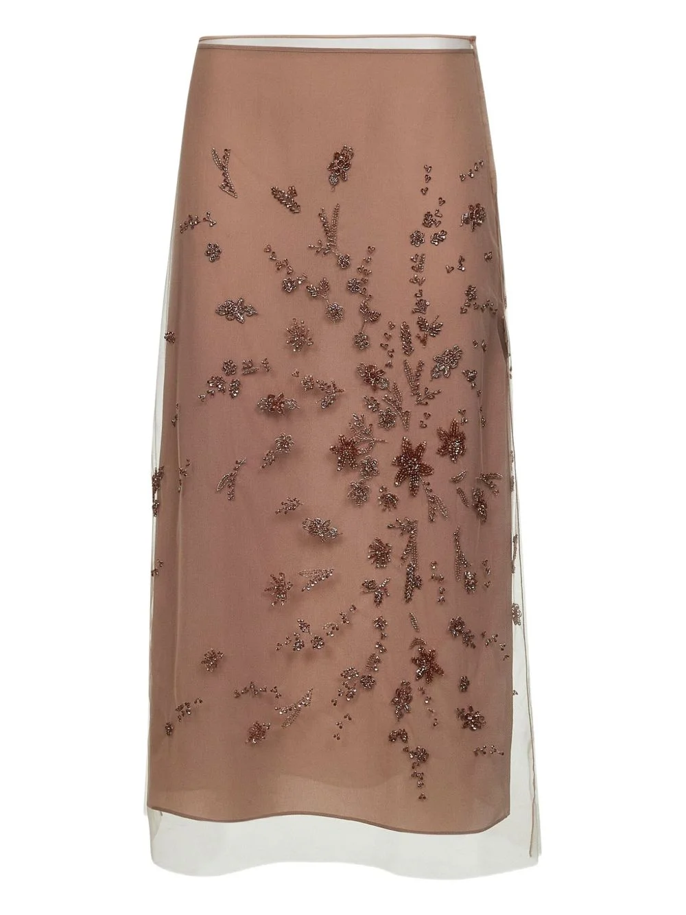 floral-embellishments midi skirt Highlights - Pink - Embroidered floral motif - Beads embellishment - Concealed zip closure - Tulle layer Made in Italy Composition Polyamide 100% Washing instructions Read Manufacturer Guidelines