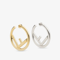 Hoop earrings in the shape of the new Fendi logo. Featuring a distinctive combination of gold and palladium finishes. Made in Italy Composition: 100% aluminum, 100% steel Product Code: 8AK626B08F0F0N Product Care: The product you have purchased may be embellished with a precious metal top or varnish and may also feature appliques, gemstones (in various shades of the same color), crystals, plexiglass or resin. The mixture of materials and the special details give this product its unique character. To best maintain the product’s appearance over time, avoid contact with sea water, spa water, lacquers, perfumes, solvents, chemicals and abrasive materials. If necessary, clean with water and a neutral soap and/or polish with a dry microfiber cloth.