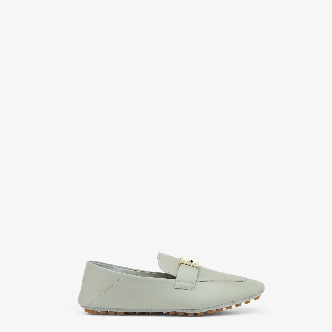 Driving loafers with FF Baguette motif. Suede sole with raised rubber inserts. The heel can be folded to wear the style as a sabot. Made of matcha green nappa leather. Gold-finish metalware. Made in Italy Composition: 100% lamb leather, inside: 100% lamb leather Product Code: 8D8514NBAF1S2A