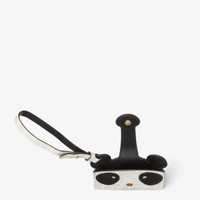 Fendi Best Friends Forever card case with panda-head design. Features an internal compartment and clasp with bridge and hidden snap button. Leather strap to attach it to bags and belts. Made of white FF fabric with black leather details. Gold-finish metalware. Made in Italy Composition: 49% polyurethane, 28% cotton, 23% polyester, 100% calfskin, inside: 100% calfskin Product Code: 8M0543AWDAF0V3B