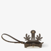 Fendi Best Friends Forever card case with a reindeer-head design. Features an internal compartment and clasp with bridge and hidden snap button. Leather strap to attach it to bags and belts. Made of tobacco brown FF fabric with details in multicolored leather. Gold-finish metalware. Made in Italy Composition: 49% polyurethane, 28% cotton, 23% polyester, 100% calfskin, inside: 100% calfskin Product Code: 8M0542AWDAF1TWY
