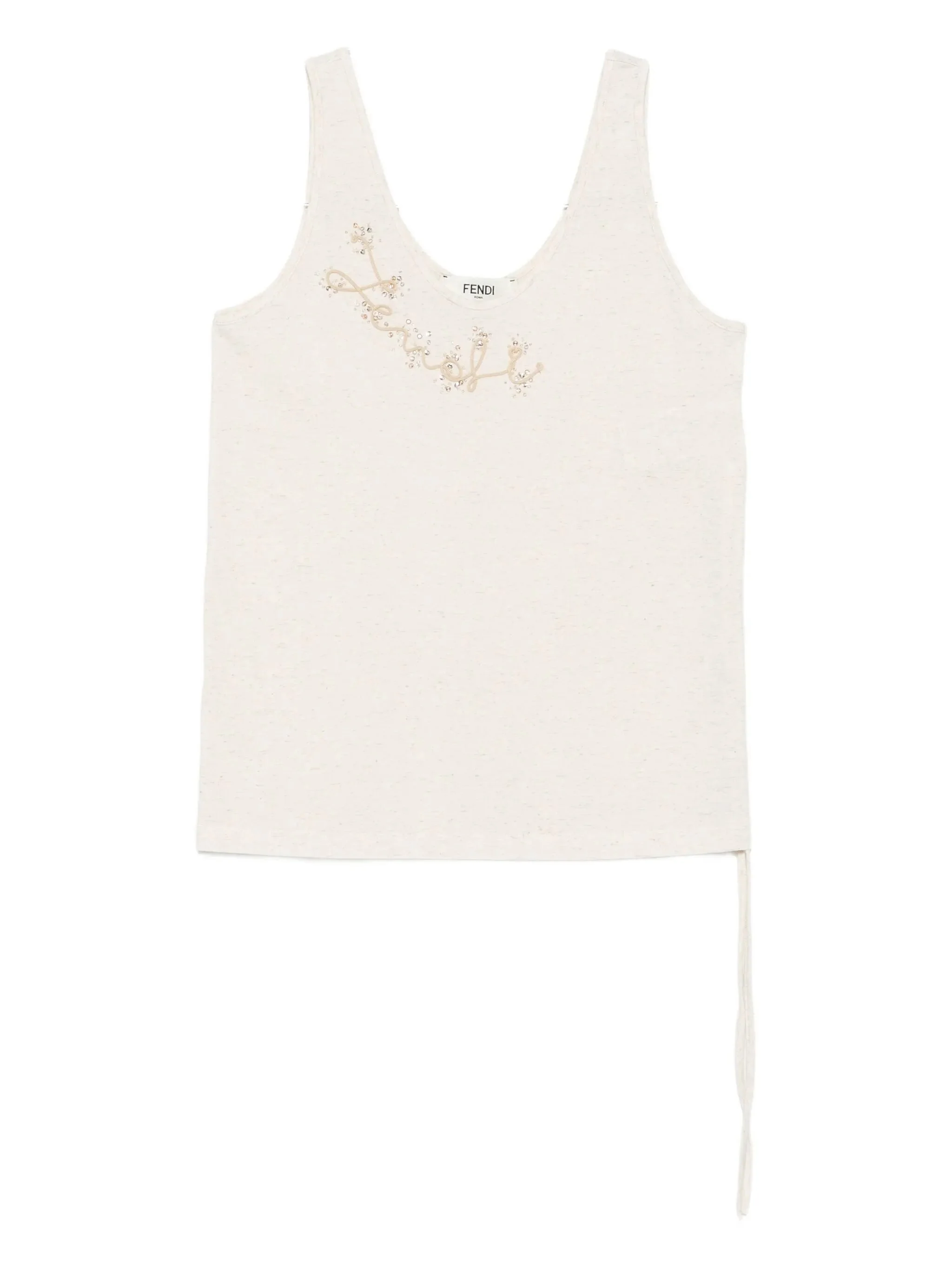 beige cotton-blend embroidered lettering scoop neck sleeveless - Color: NEUTRALS - Made in: Italy - Designer Style ID: ASMH FS9735 F1SAZ Composition and care Cotton: 65.0%, Linen/flax: 15.0%, Polyester: 20.0%